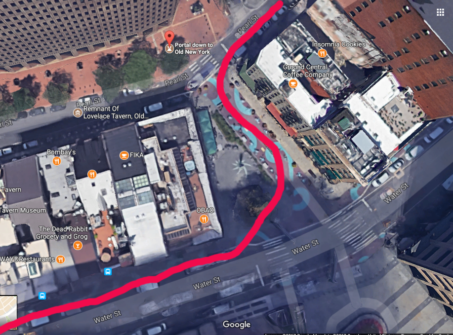 The Coenties Slip "S-Curve," at Coentes Slip and Pearl Street, on the former 2nd and 3rd Ave Elevated Train lines